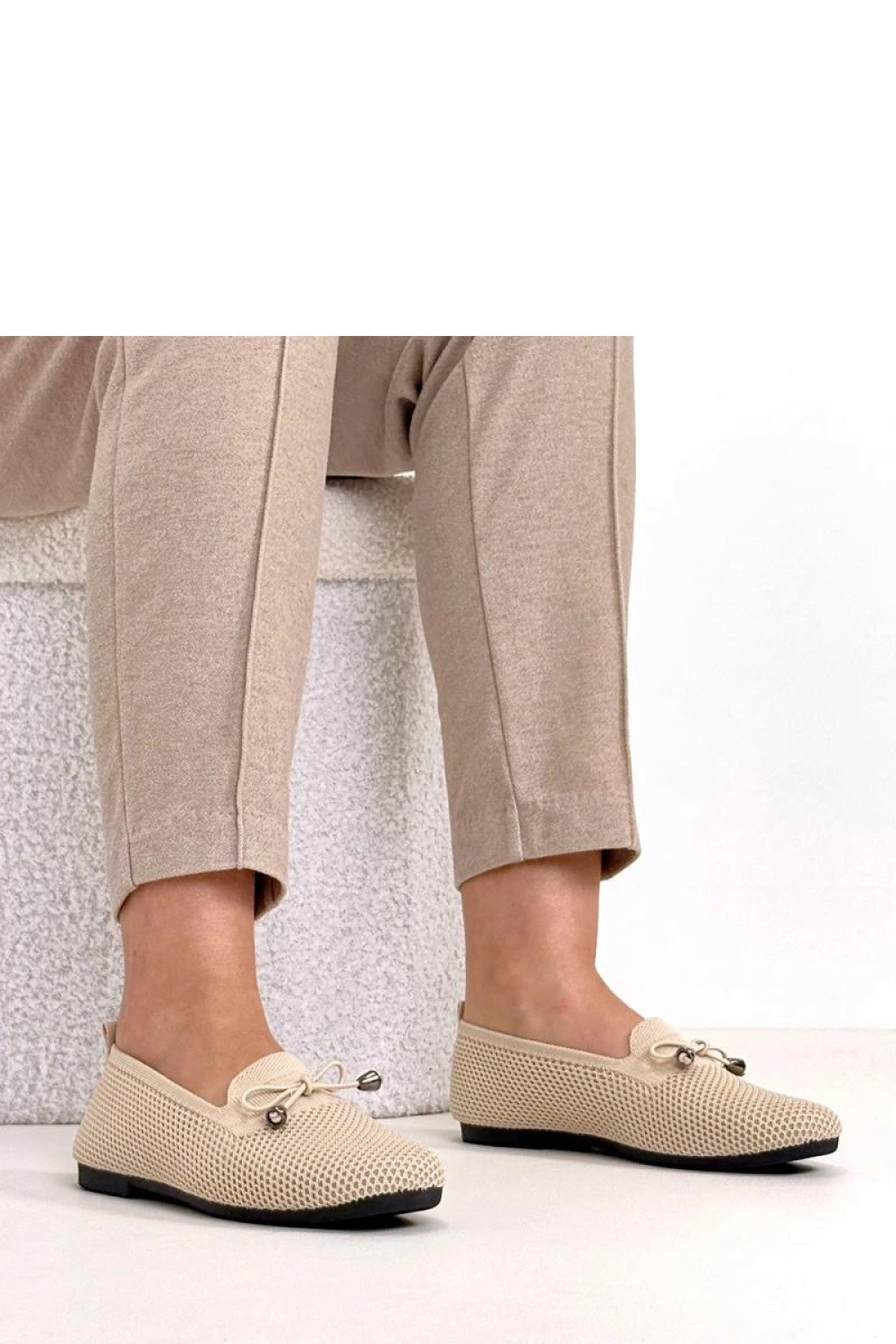 Elegantní mokasíny s efektní ozdobnou mašlí na špičce jsou skvělou kombinací klasiky a ženského půvabu. Model je vyroben z vysoké kvality látky, která je lehká, prodyšná a příjemná na dotek, ideální na teplejší dny. Boty mají moderní čtvercovou špičku, která jim dodává moderní charakter a zajišťuje pohodlí pro prsty. Jedná se o nízký střih, který skvěle ladí jak s kalhotami, tak s šaty nebo sukněmi. 2 cm vysoký podpatek jemně zdvihuje postavu, zajišťuje stabilitu a pohodlí při každodenním nošení. Zapínání bez potřeby zapínání nebo šněrování. Stélka z látky zvyšuje pohodlí nošení a zajišťuje správnou cirkulaci vzduchu. Ideální volba pro ženy, které oceňují pohodlí, decentní eleganci a nadčasový styl.