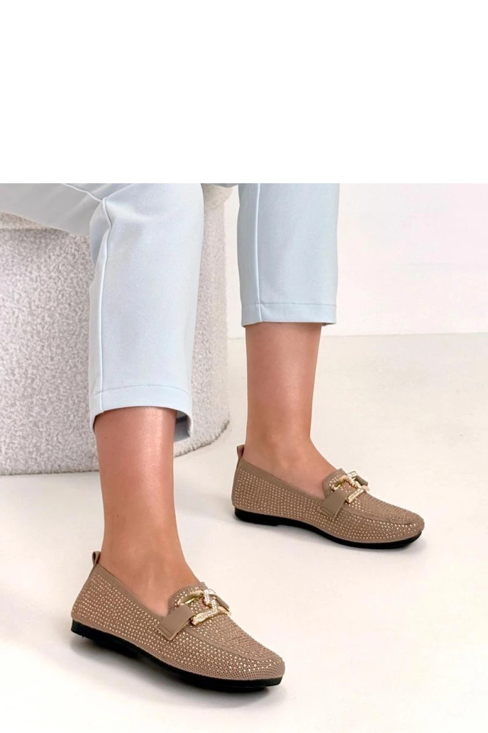 Unikátní mokasíny zdobené efektními zirkony a kovovým detailom jsou nabídkou pro ženy, které mají rády decentní lesk a stylové dokončení. Model vyrobený z vysoce kvalitní látky vypadá lehce a elegantně, skvěle doplňujíc jak každodenní, tak elegantní outfit. Kulatý špičák zajistí pohodlí a volnost pro prsty, a nízký střih zase dělá boty mimořádně pohodlné na každodenní nošení. 2cm vysoký podpatek jemně zvedá postavu, zaručující stabilitu a pohodlí po celý den. Zapínání na zasouvací konstrukci umožňuje rychlé a snadné obouvání, což dělá model praktickým a funkčním. Vložka z látky zvyšuje pohodlí nošení a podporuje správnou cirkulaci vzduchu. To jsou mokasíny, které spojují klasický střih s efektními zdobeními, přidávající elegantní charakter každému outfitu.