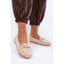 Mokasíny dámské ze syntetického semiše jsou stylovým a pohodlným návrhem na každý den. Plochý střih zajišťuje pohodlí nošení, což z něj činí skvělý model pro dlouhodobé použití. V přední části je ozdobný detail, který celku dodává elegantní charakter a zdůrazňuje moderní vzhled obuvi. Vložka z přírodní kůže zvyšuje pohodlí a přizpůsobení se noze. Je to ideální volba pro ženy, které ocení klasiku, pohodlí a decentní eleganci ve svých každodenních stylizacích.
