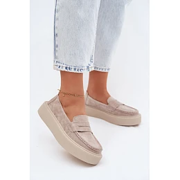 Mokasíny pro ženy ze syntetického semiše na platformě jsou kombinací klasiky a moderního stylu. Jejich nadčasový střih se skvěle hodí k mnoha outfitům, od každodenních až po elegantní. Zvýšená podrážka přidává několik centimetrů výšky a zdůrazňuje postavu, aniž by ubrala na pohodlí. Zaoblené špičky dodávají celku jemnost a dělají z modelu velmi univerzální kousek. Ideální volba pro ženy, které ocení styl, pohodlí a nadčasový vzhled.