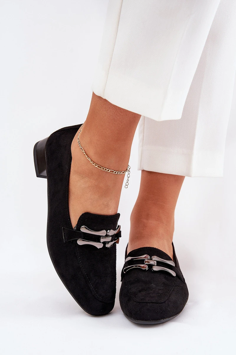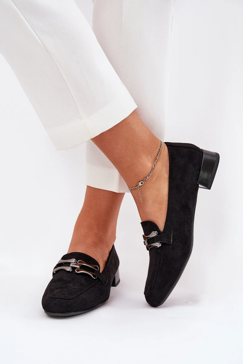 Mokasíny S Ozdobou Na Jemném Podpatku Eko Semišové Černé Pillitha