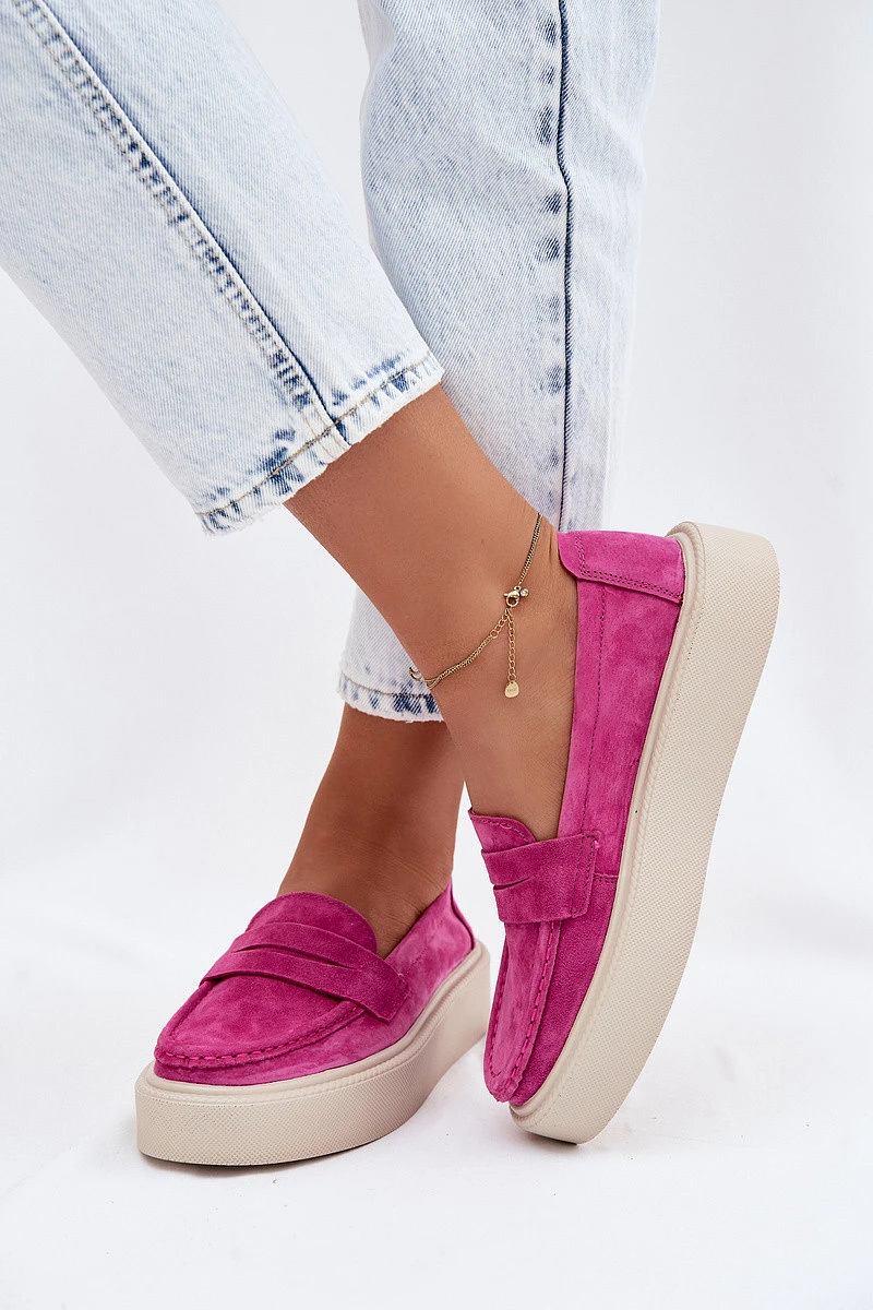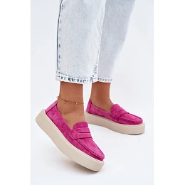 Mokasiny z pravé semišové kůže na platformě Vinceza Fuksja