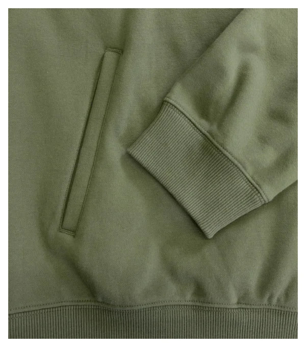 bez etikety - připraveno na rebranding volný střih s bočními švy kapuce s podšívkou, na stažení šňůrkou neutrální velikostní štítek v boční části průkrčníku vnitřní část průkrčníku začištěna páskou v barvě vrchového materiálu nízkohlavicové rukávy lištové kapsy ve stylu klokanky dolní lem a manžety rukávů z žebrového úpletu 2:2 s 5 % elastanu vnitřní strana počesaná
