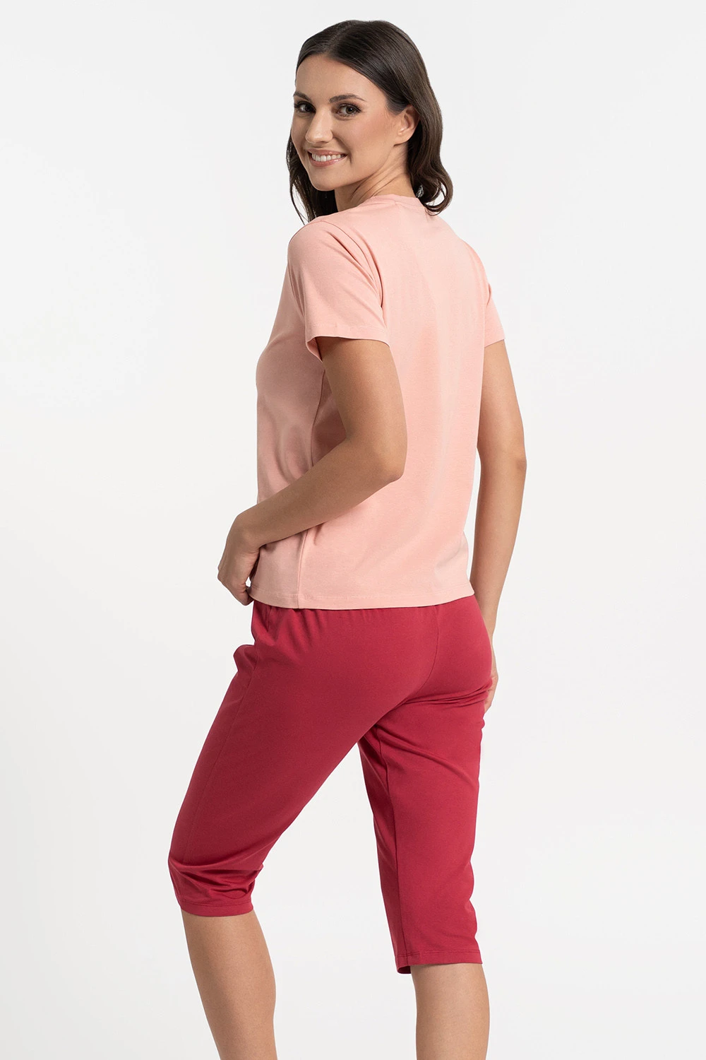 Dámské pyžamo Moraj PDD3500-018 je klasický komplet: tričko s krátkým rukávem a kulatým výstřihem a kalhoty s délkou 3/4. Měkká bavlna s elastanem zajišťuje pohodlí a volnost pohybu. Jednoduchý, každodenní střih a hladké lemy budou ideální pro každodenní nošení. Ideální pro spánek a domácí relaxaci. Složení: 95 % bavlna, 5 % elastan.