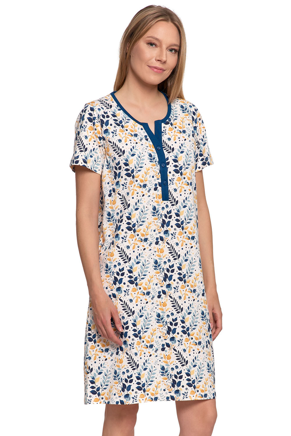 Noční košile značky Moraj.Model PDK2800-002.Výrobek je vyroben ze 100% bavlny.Délka rukávu: krátký.Dámský výrobek.Místo zapínání: vpředu.Typ výstřihu: kulatý.Noční košile se zapíná na knoflíky.Délka: krátká.