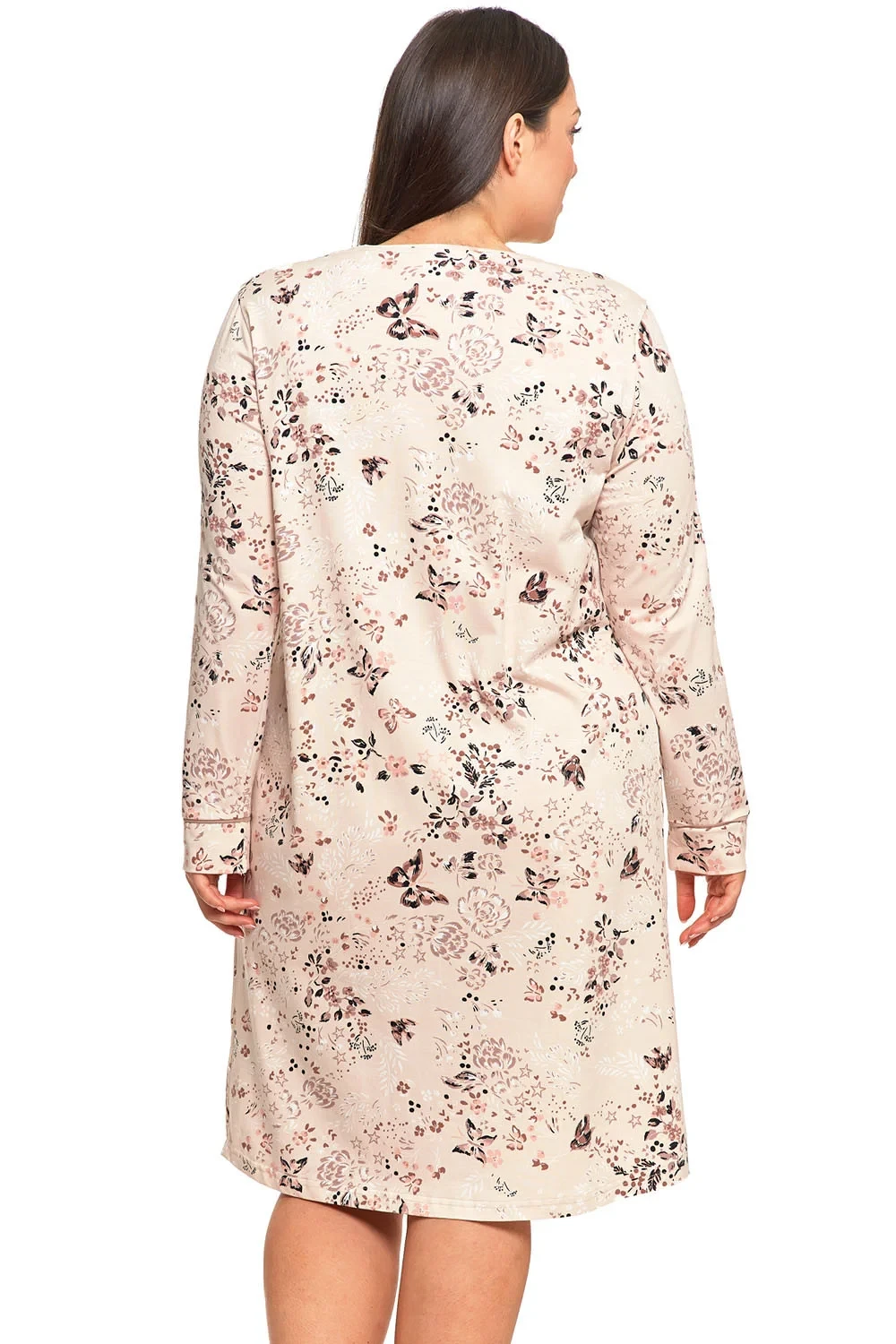 Noční košile značky Moraj, model PDK3600-005, vyrobeno z 95% bavlny, 5% elastanu, délka rukávu: dlouhý rukáv, délka: midi, dámský výrobek, typ výstřihu: ve tvaru srdce.Parametry