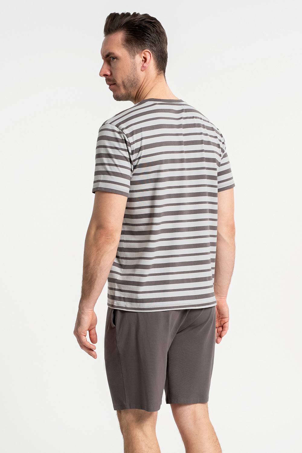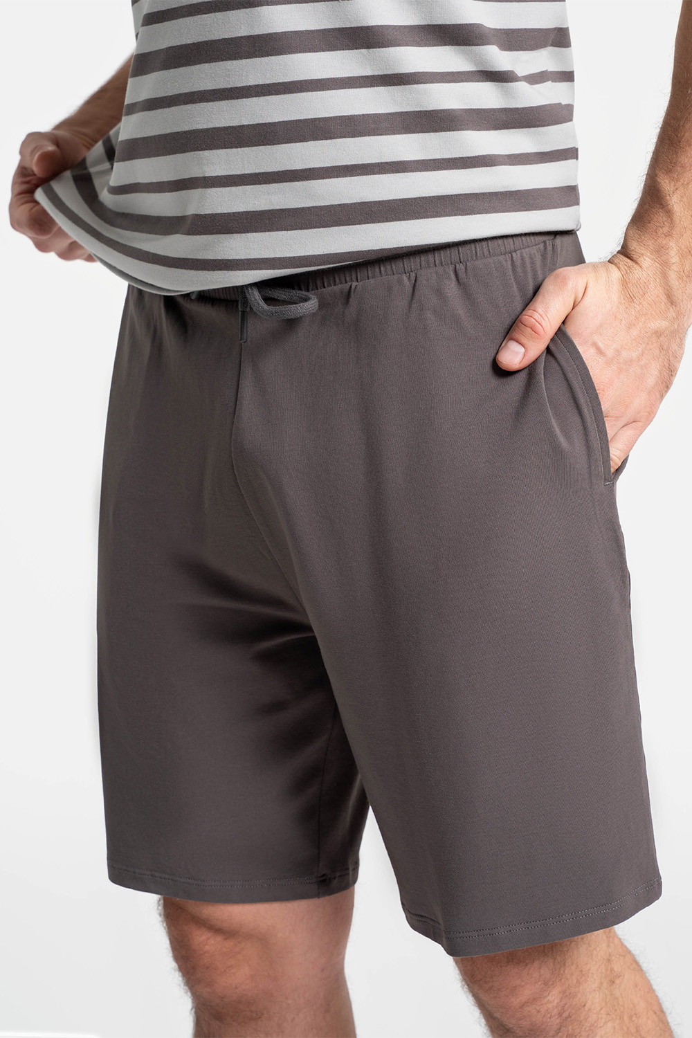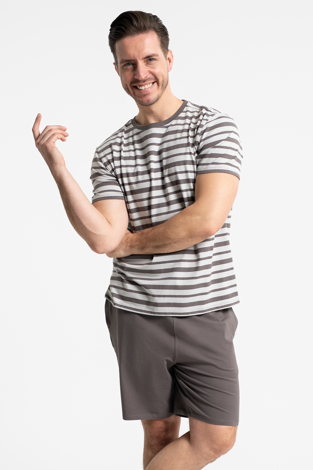 Pánské dvoudílné pyžamo Moraj je kombinací krátkého trička s kulatým výstřihem a krátkých šortek s elastickým pasem. Kapsy v šortkách zvyšují funkčnost soupravy. Měkký bavlněný úplet s elastanem poskytuje pohodlí a volnost pohybu. Univerzální jednoduchý střih je vhodný pro každodenní nošení i pro teplejší období. Složení: 95 % bavlna, 5 % elastan.