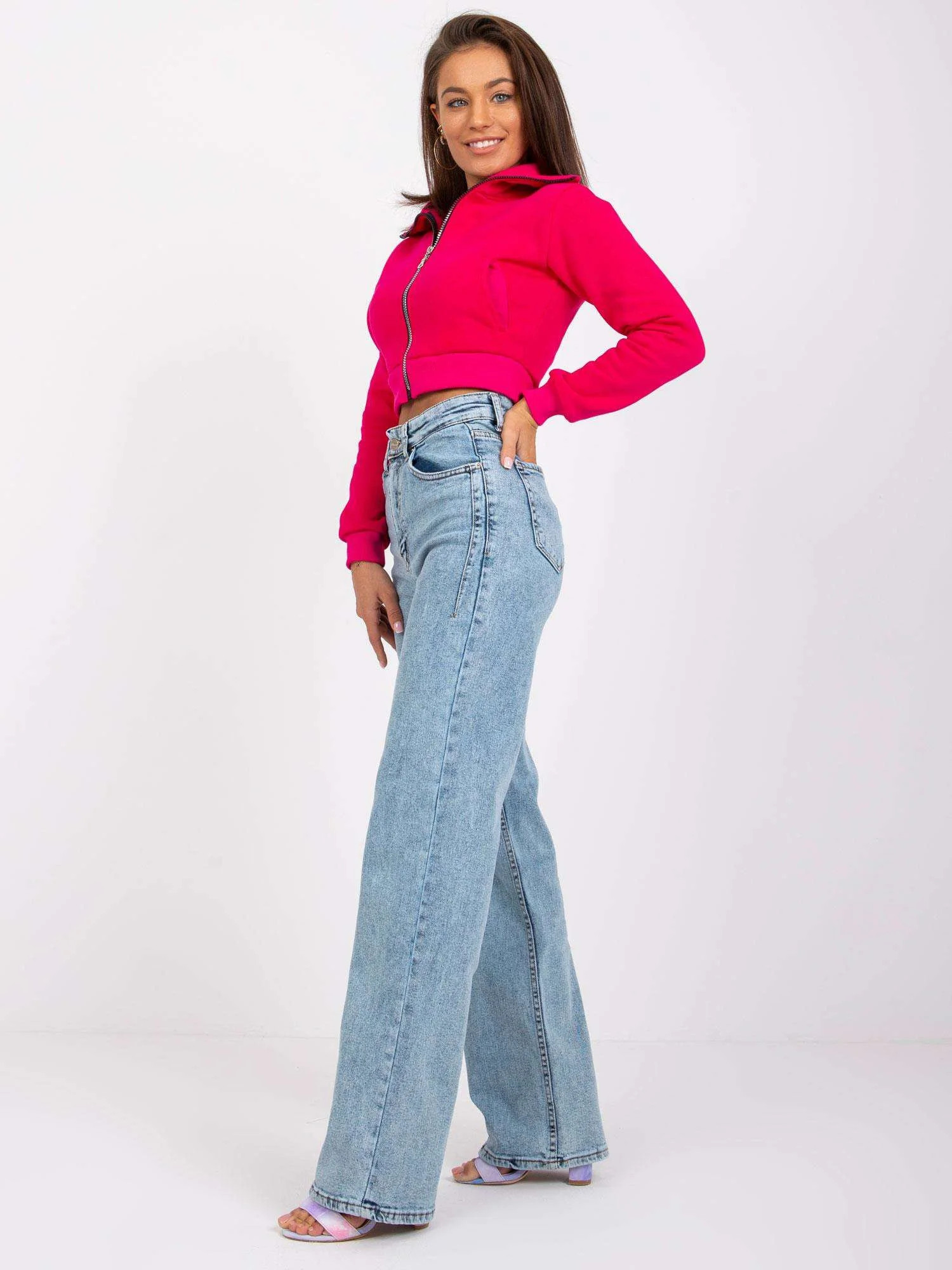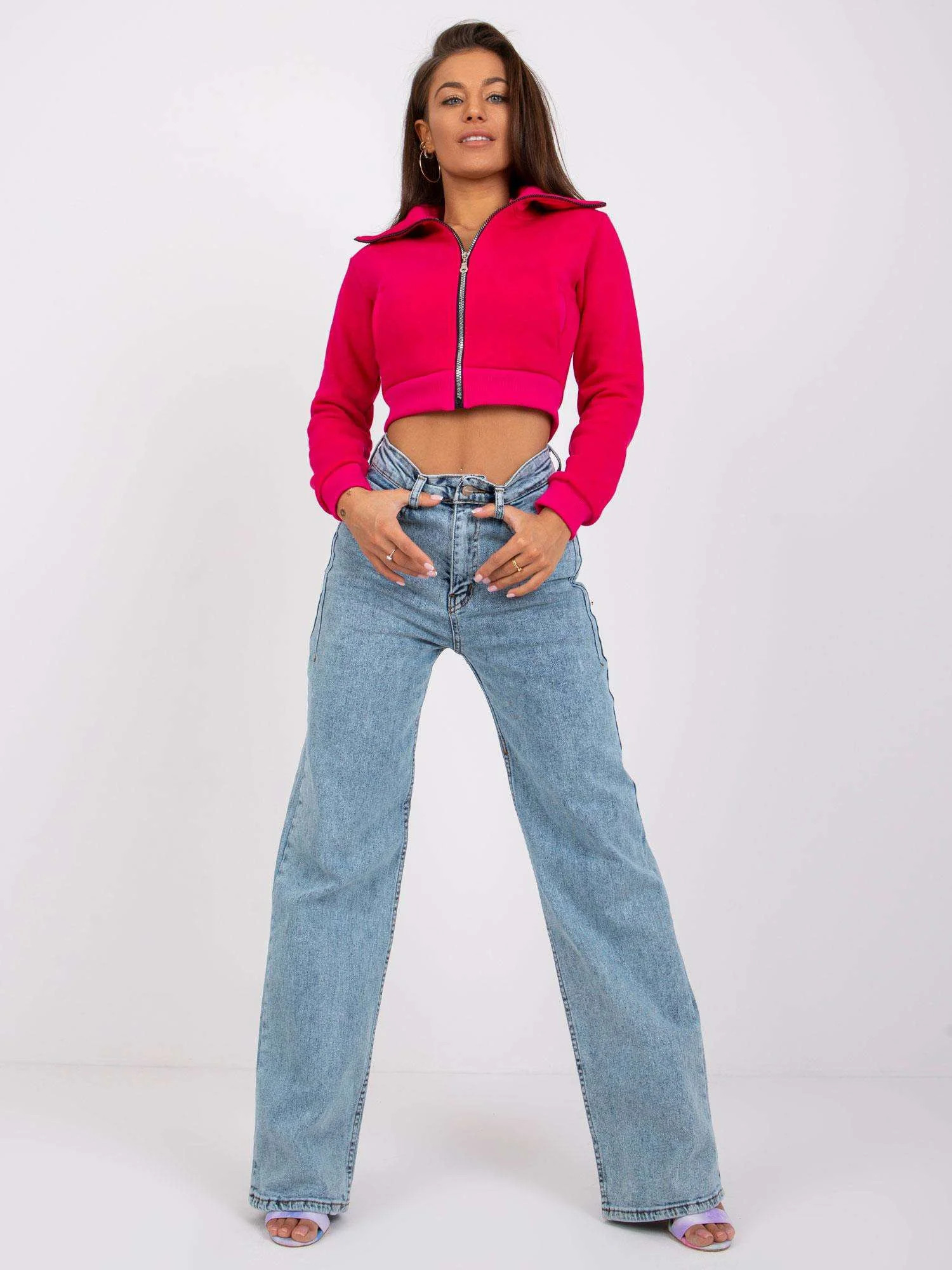 Modelka má na sobě velikost 27. Míry modelky: výška 164 cm, prsa 88 cm, pas 63 cm, boky 90 cm.