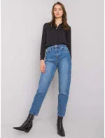 Modré mom fit džíny.