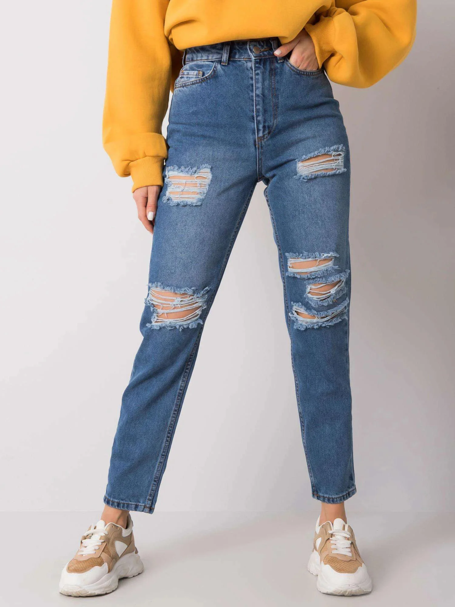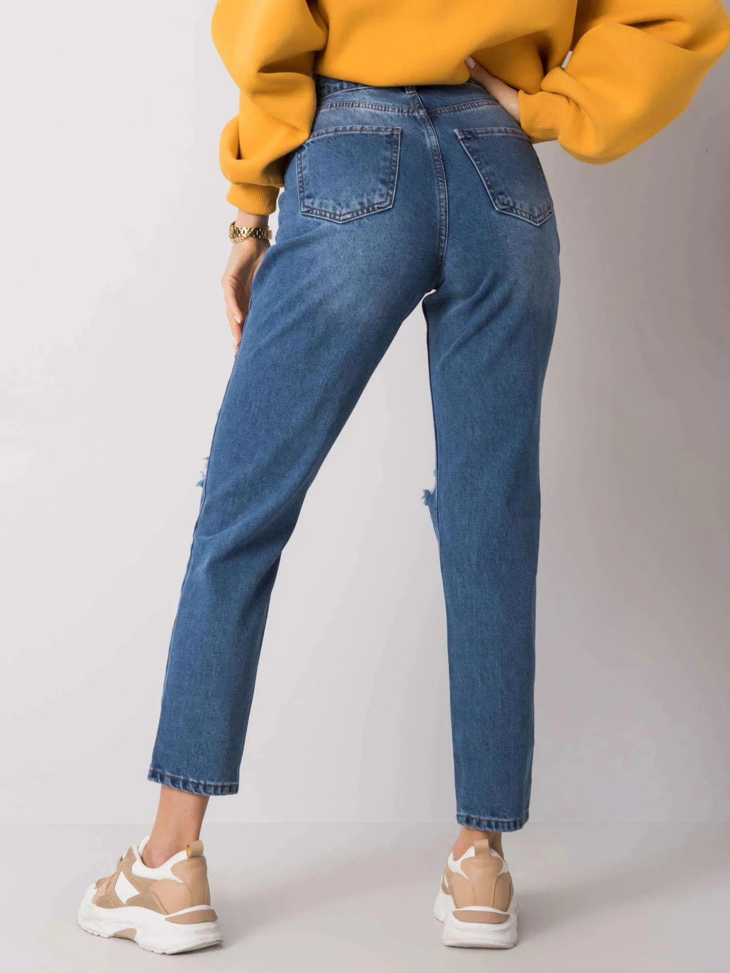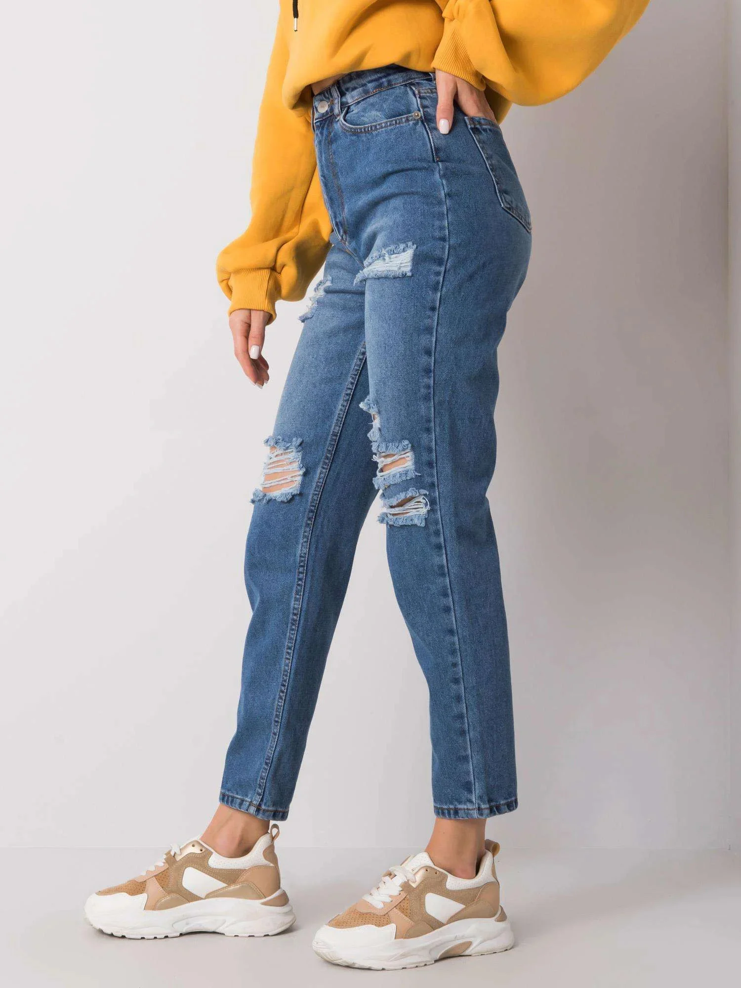 RUE PARIS Modré džínové kalhoty pro maminky s dírami.