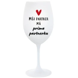 MŮJ PARTNER MÁ PRIMA PARTNERKU - bílá sklenice na víno 350 ml