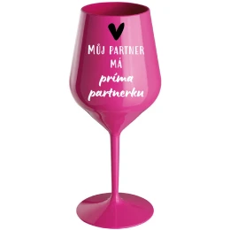 MŮJ PARTNER MÁ PRIMA PARTNERKU - růžová nerozbitná sklenice na víno 470 ml