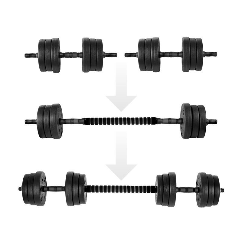 - Dvě jednoruční činky s možností spojení do jedné obouruční činky