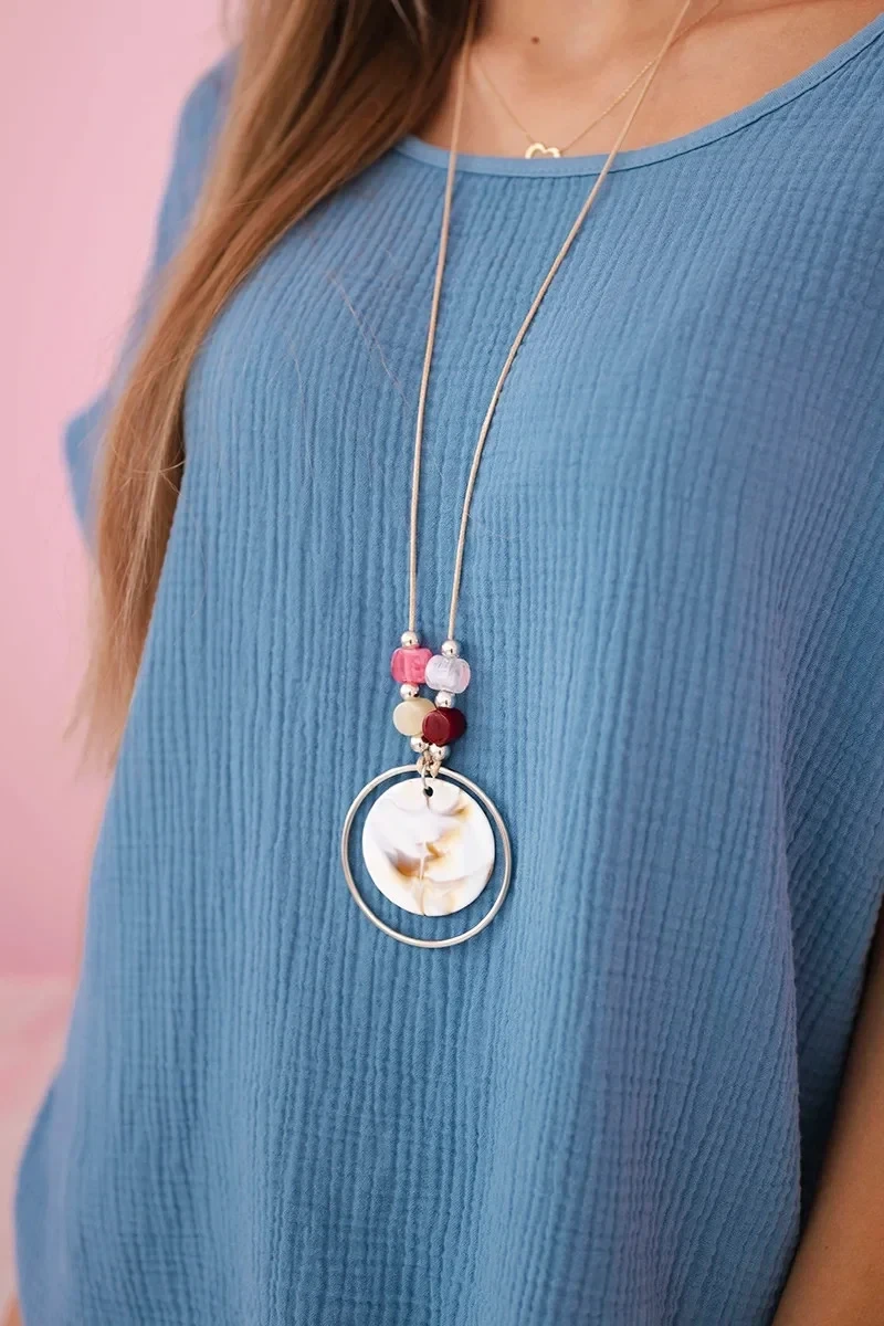 Mušelínová halenka s náhrdelníkem je ideální volbou pro ženy, které ocení jemný styl a výjimečné pohodlí při nošení. Vyrobena z lehkého, prodyšného mušelínu, poskytuje jemnost a volnost pohybu po celý den. Její volný, elegantní střih zajišťuje dokonalé přizpůsobení postavě a podtrhuje její přirozenou krásu. Halenku doplňuje ozdobný náhrdelník, který jí dodává charakter a eliminuje potřebu dalších doplňků. Tento model se skvěle hodí jak na každodenní nošení, tak i na formálnější příležitosti. Můžete ji kombinovat s džíny, elegantními kalhotami nebo sukní a vytvořit tak perfektní outfit pro každou příležitost. Zvolte mušelínovou halenku s náhrdelníkem a užívejte si nadčasovou eleganci v lehkém, ženském provedení. Velikost je univerzální a vhodná pro ženy nosící velikosti S, M nebo L.