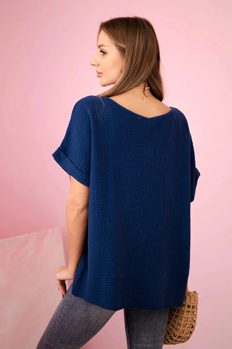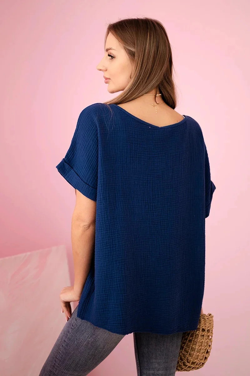 Mušelínová halenka s náhrdelníkem námořnická modř