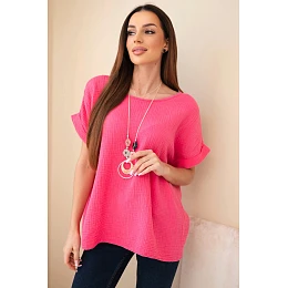 Mušelínová halenka s náhrdelníkem růžový