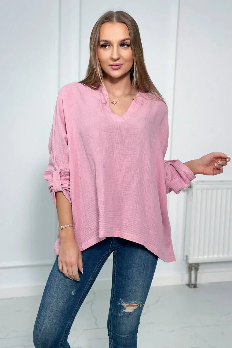 Mušelínová halenka s ohrnutými rukávy světle růžová