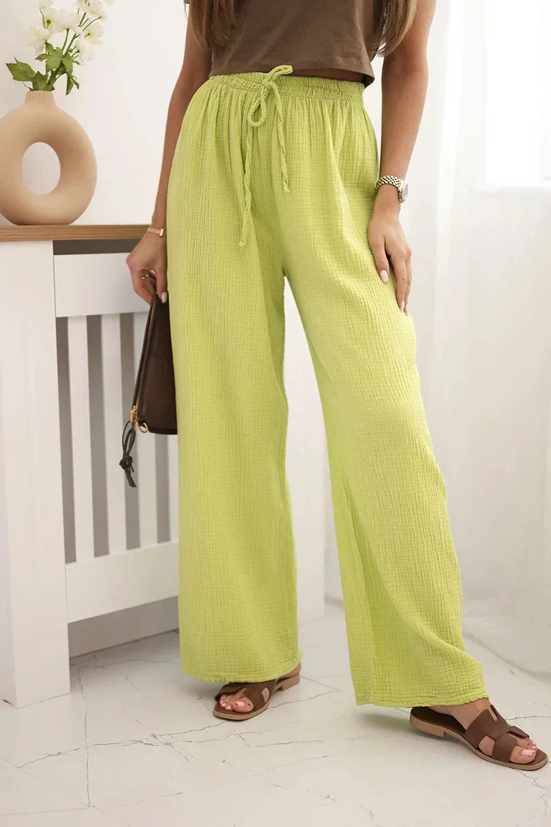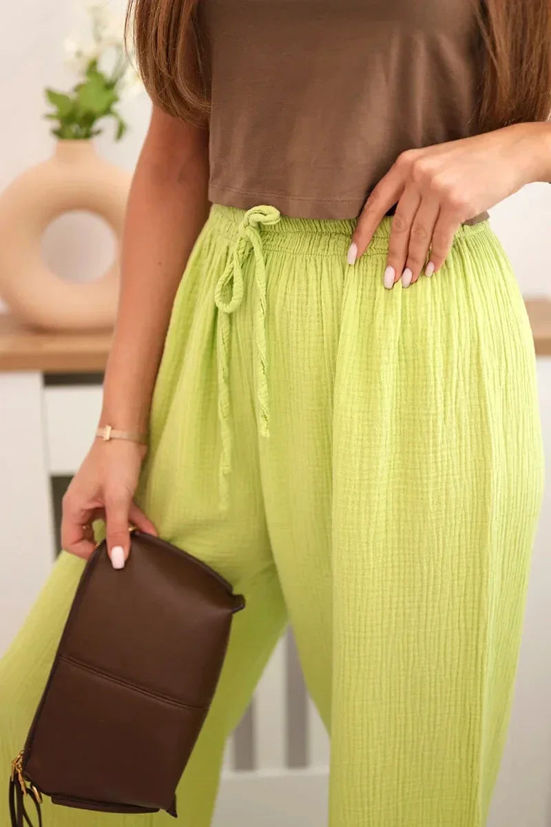 Mušelínové kalhoty se širokou nohavicí kiwi