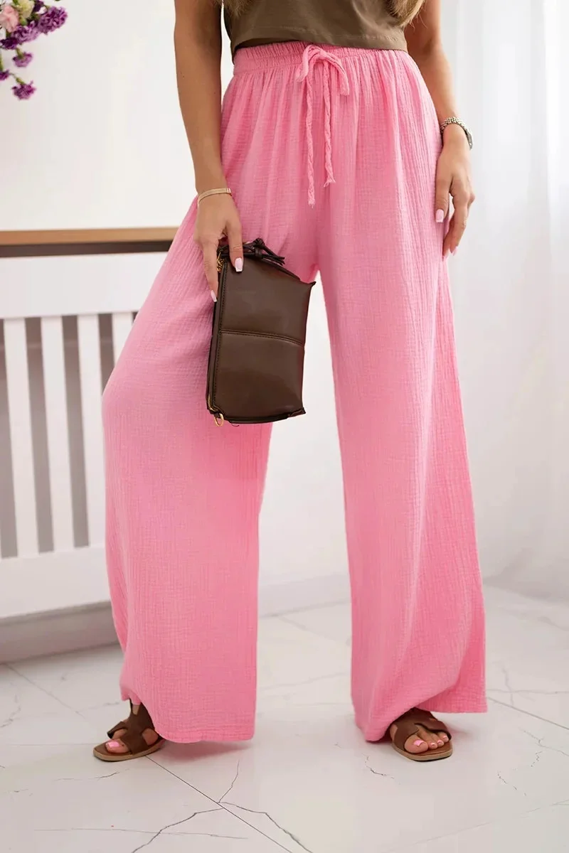 Mušelínové kalhoty se širokou nohavicí světle růžová