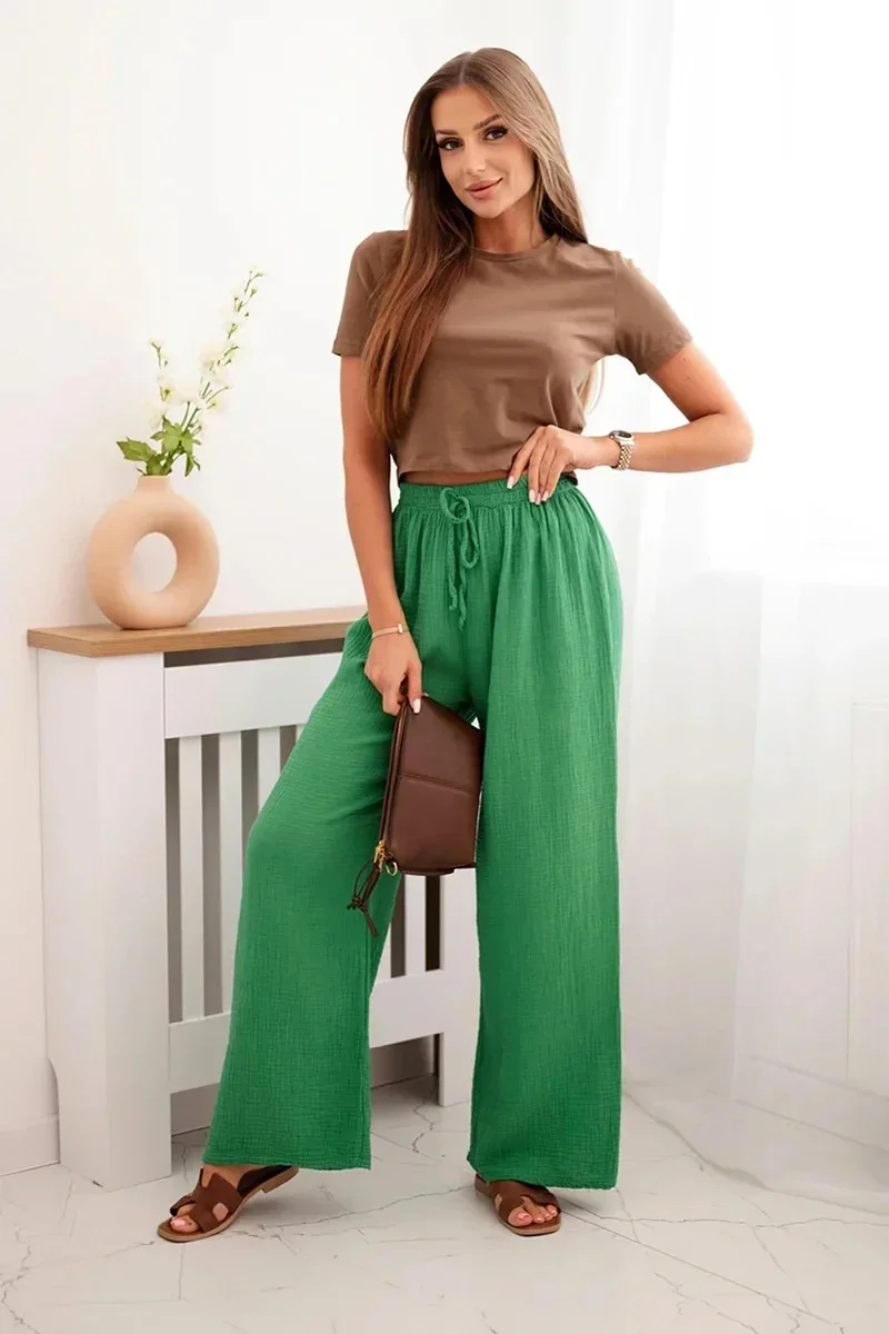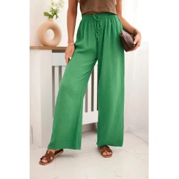 Mušelínové kalhoty se širokou nohavicí zelený