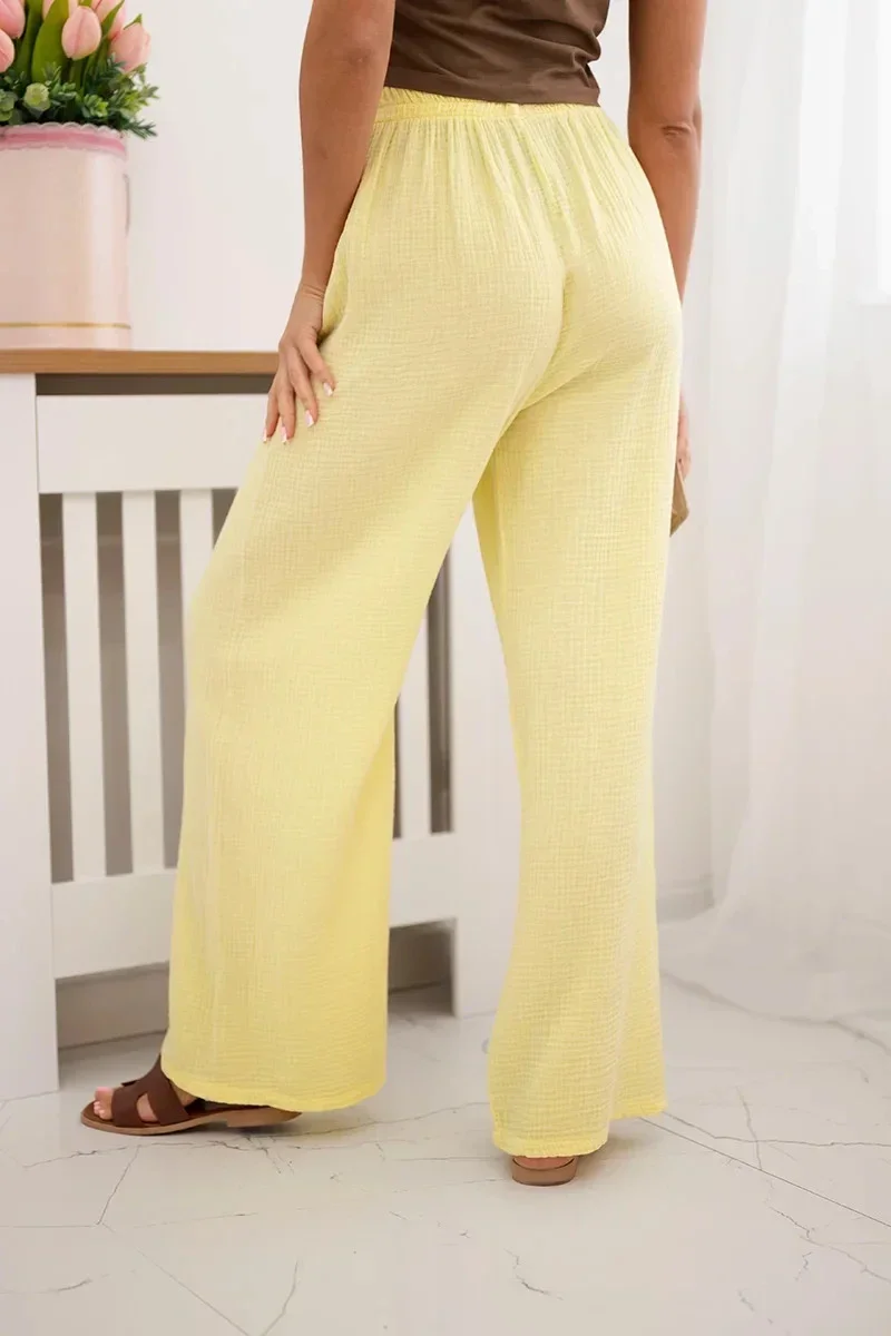 Mušelínové kalhoty se širokou nohavicí žlutý
