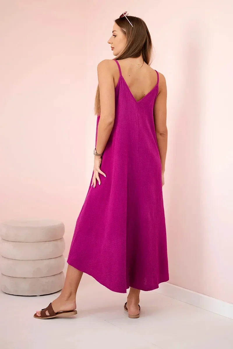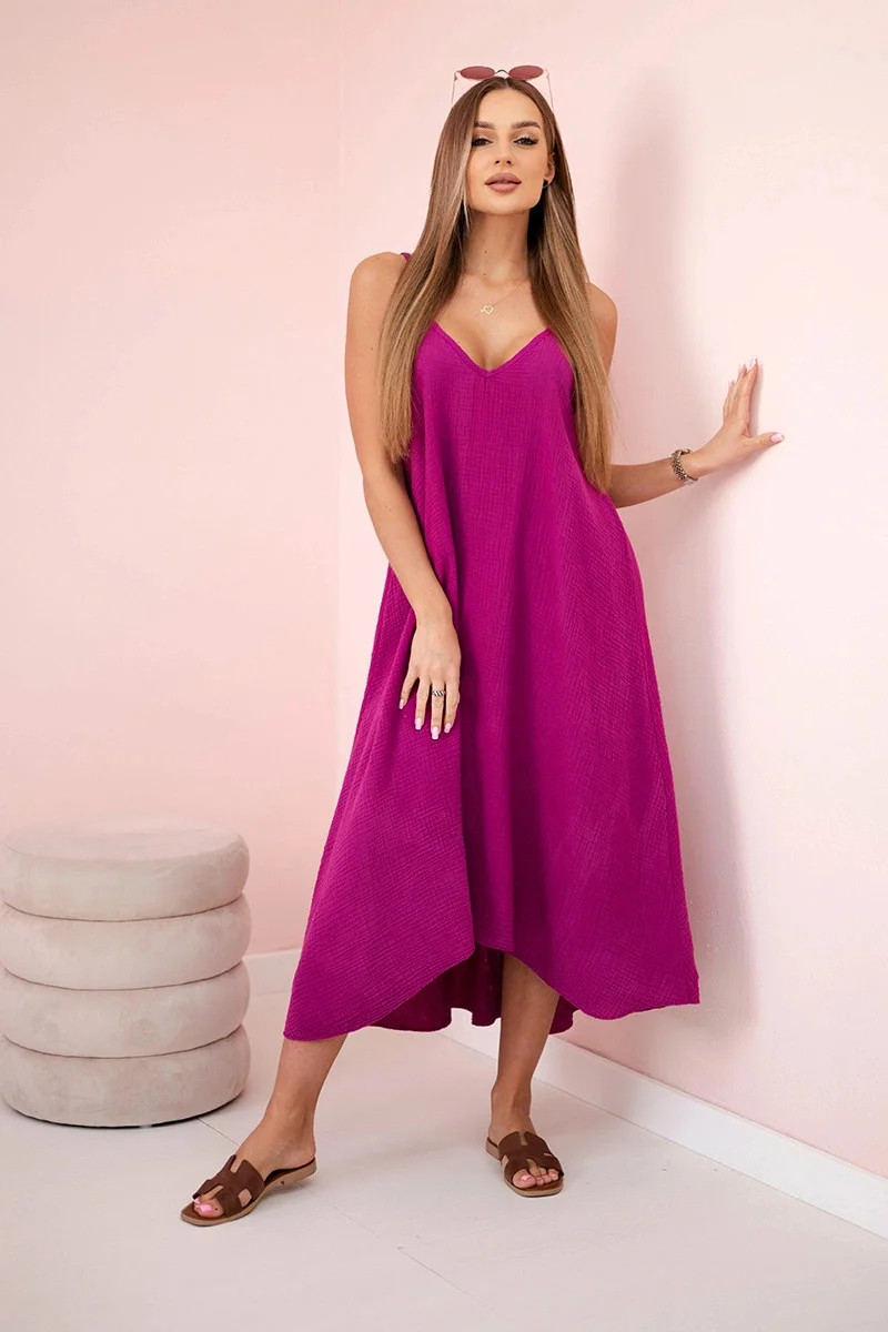 Mušelínové šaty na ramínka chrpově tmavě fialová