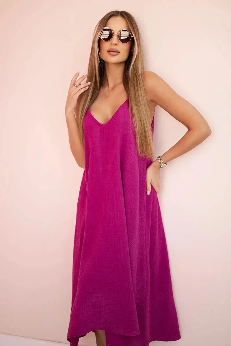 Mušelínové šaty na ramínka jsou letní a lehkou volbou, která spojuje svobodu a ženský šarm. Tyto šaty, vyrobené z jemného mušelínového materiálu, se pohodlně nosí i v těch nejteplejších dnech. Ramínka dodávají celému stylingu lehkost a zároveň zvýrazňují krk a ramena. Ideální na procházky po pláži, večerní výlety nebo letní setkání s přáteli. Mušelínové šaty na ramínka se díky své všestrannosti a pohodlí stanou nenahraditelným prvkem vašeho letního šatníku a dodají vašim letním stylům šarm a šarm. Velikost je univerzální a bude vhodná pro ženy, které nosí velikost S, M nebo L.