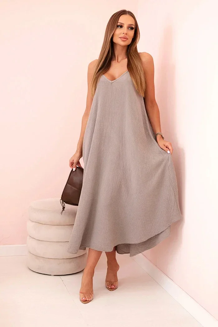Mušelínové šaty na ramínka jsou letní a lehkou volbou, která spojuje svobodu a ženský šarm. Tyto šaty, vyrobené z jemného mušelínového materiálu, se pohodlně nosí i v těch nejteplejších dnech. Ramínka dodávají celému stylingu lehkost a zároveň zvýrazňují krk a ramena. Ideální na procházky po pláži, večerní výlety nebo letní setkání s přáteli. Mušelínové šaty na ramínka se díky své všestrannosti a pohodlí stanou nenahraditelným prvkem vašeho letního šatníku a dodají vašim letním stylům šarm a šarm. Velikost je univerzální a bude vhodná pro ženy, které nosí velikost S, M nebo L.