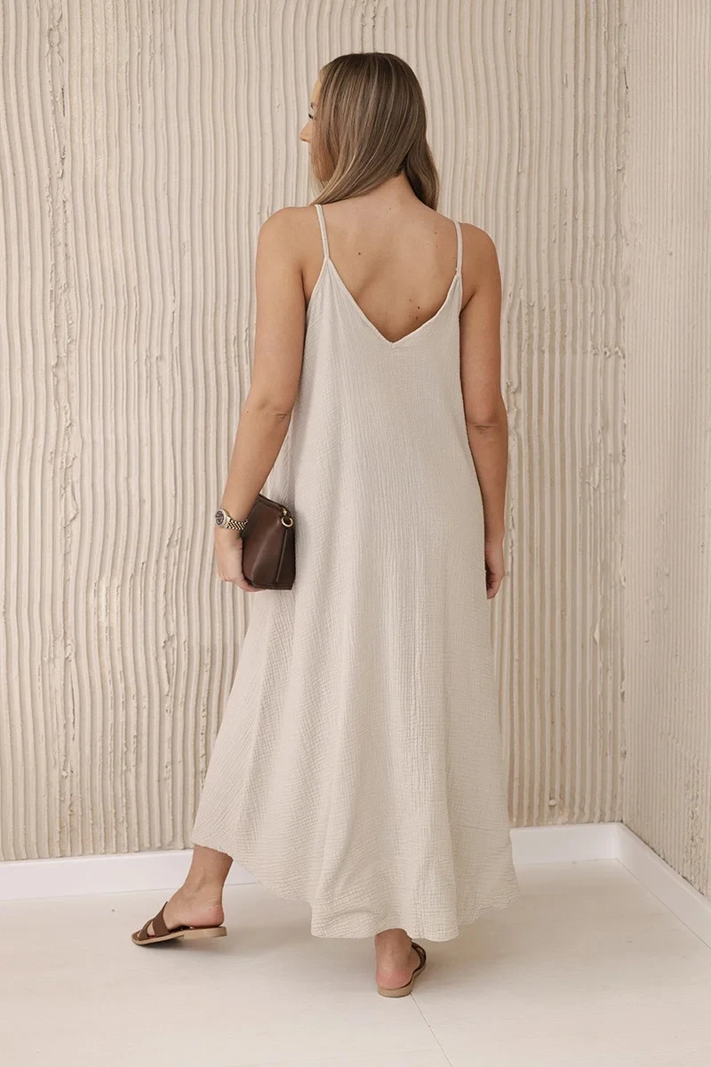 Mušelínové šaty na ramínka jsou letní a lehkou volbou, která spojuje svobodu a ženský šarm. Tyto šaty, vyrobené z jemného mušelínového materiálu, se pohodlně nosí i v těch nejteplejších dnech. Ramínka dodávají celému stylingu lehkost a zároveň zvýrazňují krk a ramena. Ideální na procházky po pláži, večerní výlety nebo letní setkání s přáteli. Mušelínové šaty na ramínka se díky své všestrannosti a pohodlí stanou nenahraditelným prvkem vašeho letního šatníku a dodají vašim letním stylům šarm a šarm. Velikost je univerzální a bude vhodná pro ženy, které nosí velikost S, M nebo L.