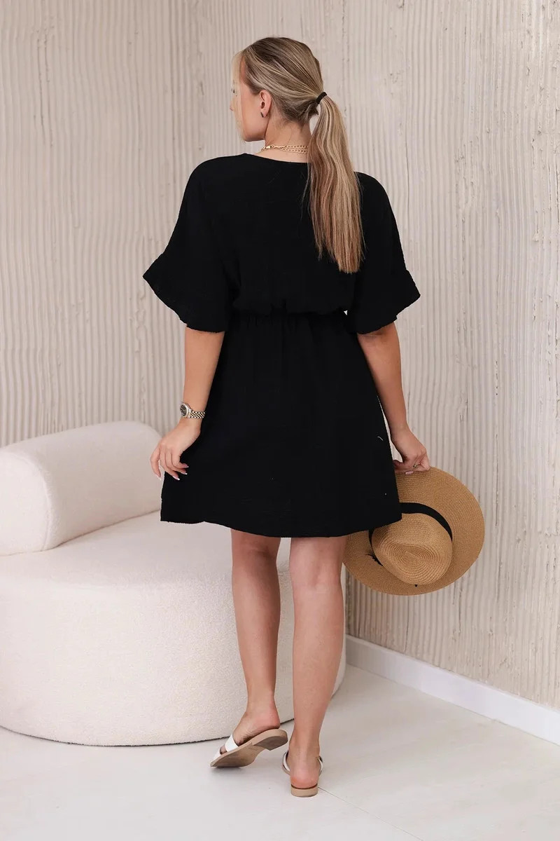 Vypasované mušelínové šaty jsou perfektní volbou pro ty, kteří chtějí spojit lehkost a ženský vzhled v jednom. Tyto šaty, vyrobené z jemného mušelínu, jsou extrémně pohodlné a vzdušné, ideální pro teplé dny. Její vypasovaný střih zvýrazňuje postavu, dodává jí eleganci a ženský šarm. Ideální pro mnoho příležitostí, od letních procházek po setkání s přáteli nebo romantická schůzka. Vypasované mušelínové šaty se díky své všestrannosti a pohodlí stanou oblíbeným prvkem vašeho šatníku. Velikost je univerzální a bude vhodná pro ženy, které nosí velikost S, M nebo L.