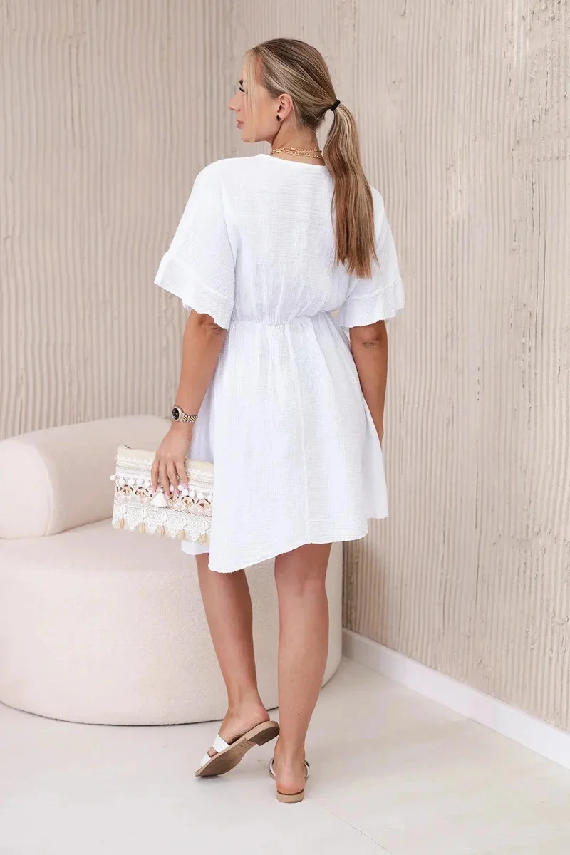Vypasované mušelínové šaty jsou perfektní volbou pro ty, kteří chtějí spojit lehkost a ženský vzhled v jednom. Tyto šaty, vyrobené z jemného mušelínu, jsou extrémně pohodlné a vzdušné, ideální pro teplé dny. Její vypasovaný střih zvýrazňuje postavu, dodává jí eleganci a ženský šarm. Ideální pro mnoho příležitostí, od letních procházek po setkání s přáteli nebo romantická schůzka. Vypasované mušelínové šaty se díky své všestrannosti a pohodlí stanou oblíbeným prvkem vašeho šatníku. Velikost je univerzální a bude vhodná pro ženy, které nosí velikost S, M nebo L.