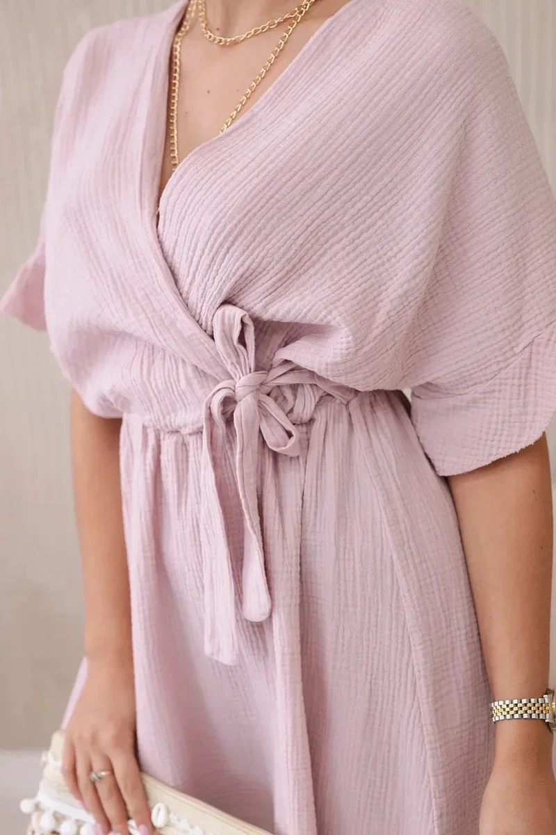 Vypasované mušelínové šaty jsou perfektní volbou pro ty, kteří chtějí spojit lehkost a ženský vzhled v jednom. Tyto šaty, vyrobené z jemného mušelínu, jsou extrémně pohodlné a vzdušné, ideální pro teplé dny. Její vypasovaný střih zvýrazňuje postavu, dodává jí eleganci a ženský šarm. Ideální pro mnoho příležitostí, od letních procházek po setkání s přáteli nebo romantická schůzka. Vypasované mušelínové šaty se díky své všestrannosti a pohodlí stanou oblíbeným prvkem vašeho šatníku. Velikost je univerzální a bude vhodná pro ženy, které nosí velikost S, M nebo L.