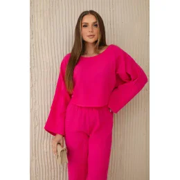 Souprava mušelínová halenka + kalhoty je dokonalou kombinací elegance a lehkosti, díky které se budete v každé situaci cítit stylově a pohodlně. Tato sada je vyrobena z jemného a vzdušného mušelínového materiálu, díky kterému se budete cítit pohodlně a svěží po celý den. Halenka z tohoto setu se vyznačuje lehkým a volným střihem, který je jako stvořený pro letní dny. Jeho subtilní design a jemné povrchové úpravy dodávají eleganci a umožňují jej snadno kombinovat s různými šatníky. Mušelínové kalhoty jsou perfektním doplňkem soupravy, poskytují pohodlí a styl v jednom. Jejich lehký a vzdušný materiál je předurčuje na letní procházky nebo večerní vycházky. Široké nohy dodávají charakter a vypadají mimořádně působivě. Mušelínový set je perfektní volbou pro ženy, které oceňují pohodlí a eleganci v každodenním oblečení. Díky lehkému a vzdušnému materiálu a univerzálnímu designu se tento set skvěle hodí k různým příležitostem a stylům. Velikost je univerzální a padne ženám, které nosí velikost S, M nebo L.