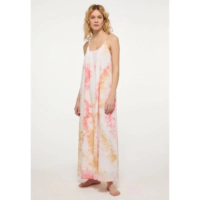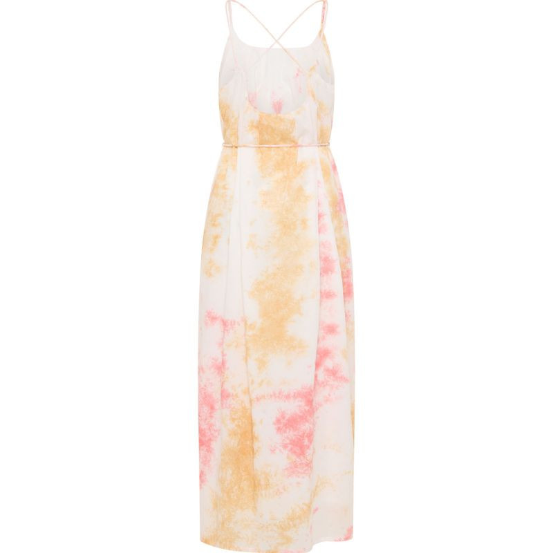- Výstřih ve tvaru písmene V, špagetová ramínka a vázaný vzor dodávají modelu romantický nádech.