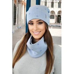 Krásná, na dotek příjemná souprava skládající se z čepice a šály. Zakončená zajímavým prostorovým vzorem z lesklé příze. Díky vysokému obsahu viskózy v přízi je souprava mimořádně příjemná na nošení. Souprava skvěle doplní každou podzimní a zimní stylizaci