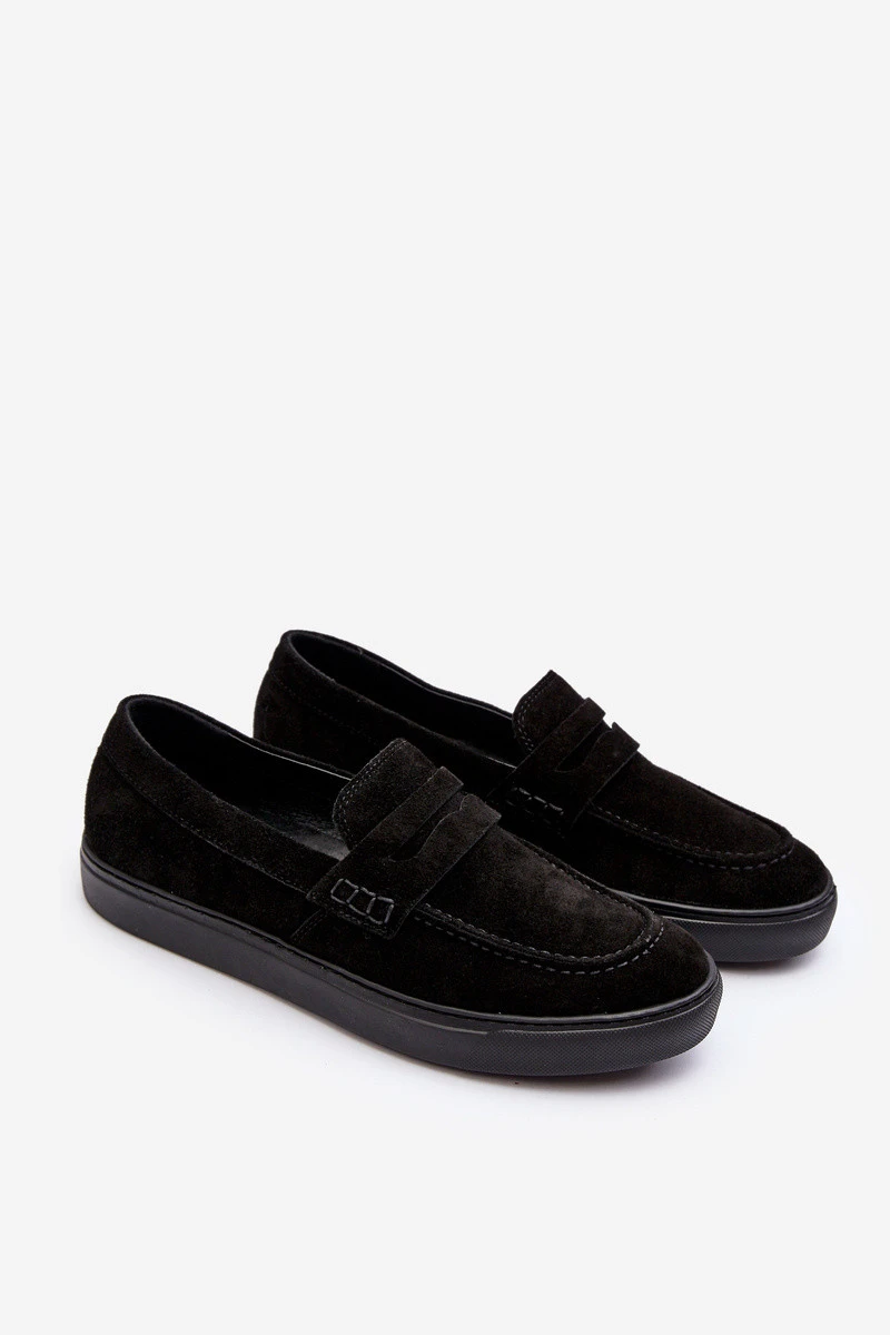 Mužské semišové polobotky Loafersy Zazoo 1574 Černé