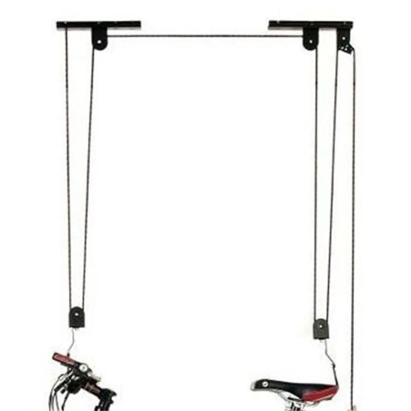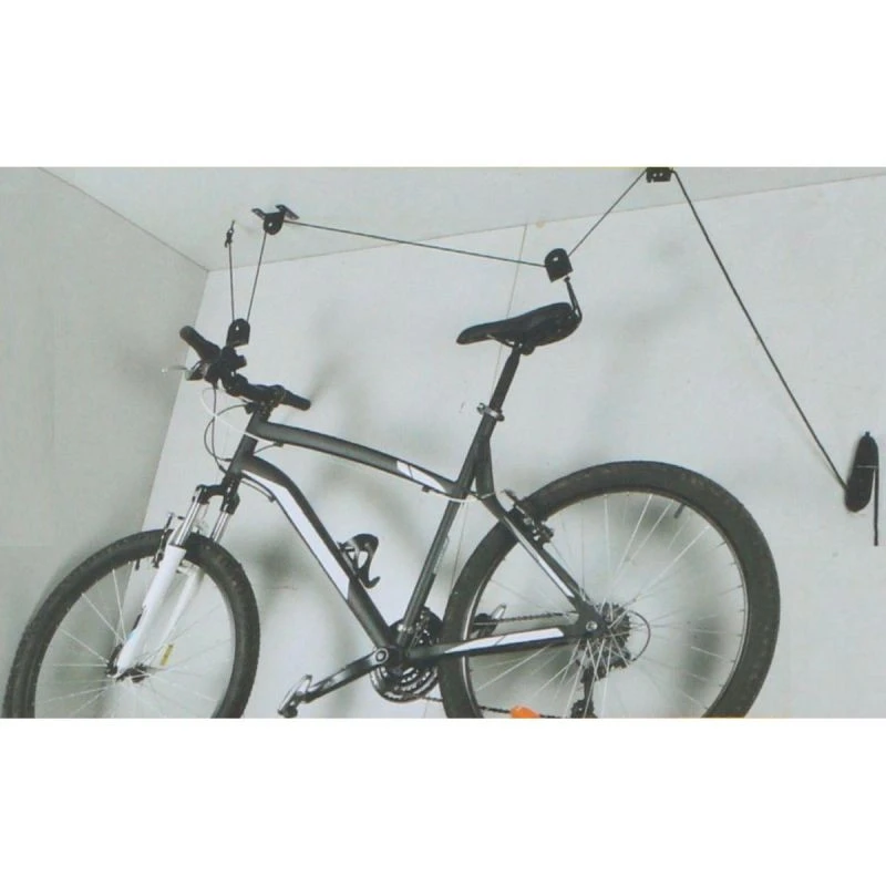 Díky dlouhému lanu, které je součástí sady, lze kolo nejen snadno vytáhnout ke stropu, ale také pohodlně zavěsit v libovolné výšce, např. při opravách.