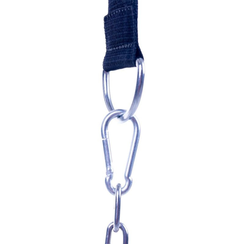 Owalna klamra, którą zakończone są taśmy zapewnia płynną pracę łańcucha z obciążeniem ułatwiając wykonywanie ćwiczeń.