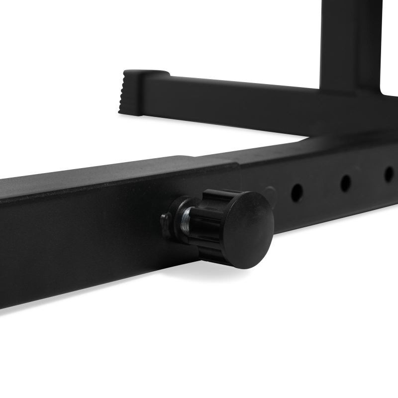 Nastavitelný stojan na dřepy VirtuFit se snadno sestavuje, snadno používá a po skončení práce se snadno skladuje. Tento stojan na dřepy je dostatečně kompaktní, aby se vešel do malého domácího fitness studia.