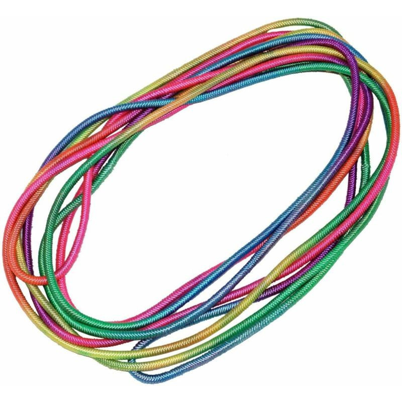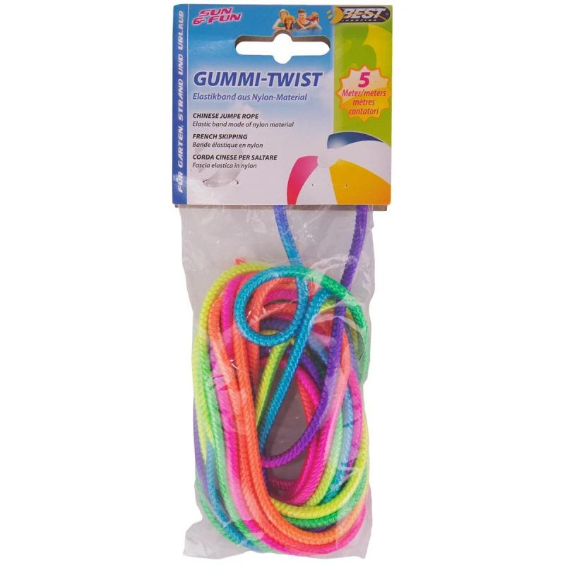 Barevná, 5 m dlouhá guma není napevno svařená v místě spoje, takže umožní libovolnou vzdálenost mezi účastníky nebo libovolný objekt, např: strom, pokud si dítě hraje samo.
