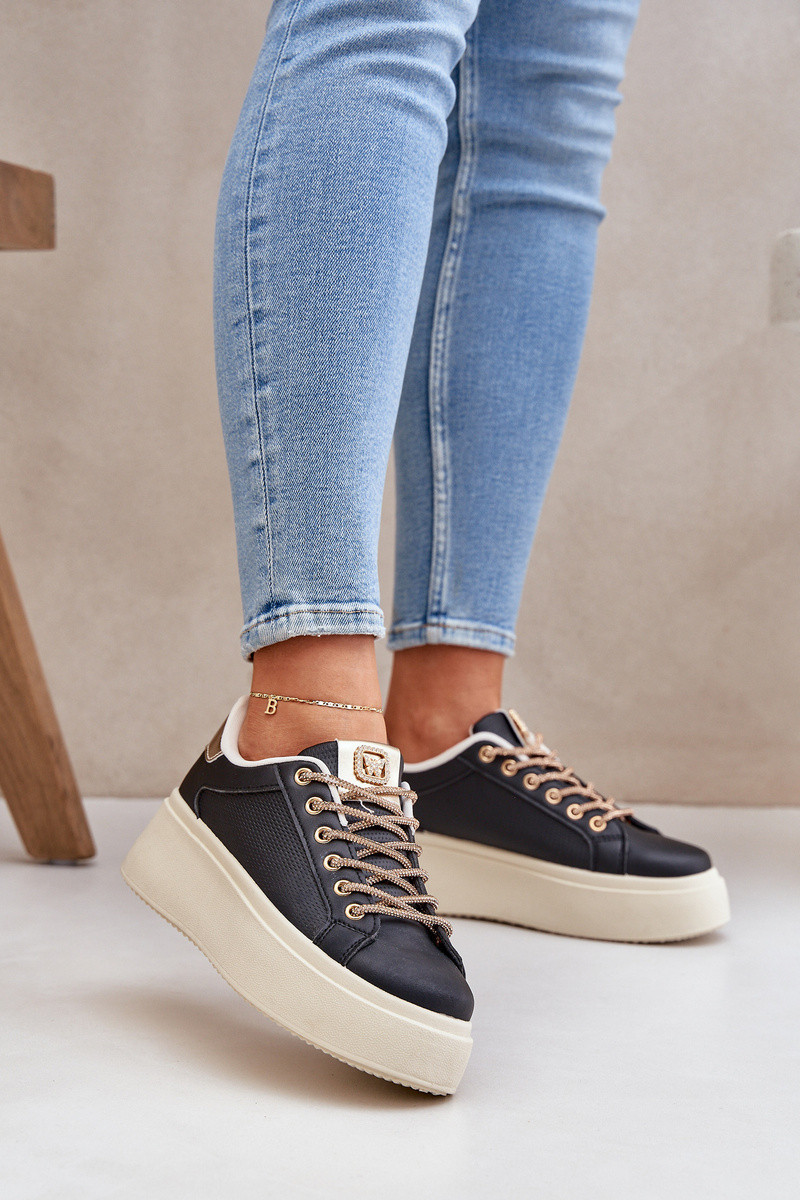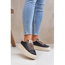Dámské sneakersy vyrobené z eko kůže. Usazeny na módní platformě, která přidává několik centimetrů na výšce. Zaoblené špičky jim dodávají univerzální charakter, hodící se do mnoha stylizací - jak neformálních, tak i odvážnějších. Pozornost přitahuje lesklé šněrování, které představuje efektní ozdobu, odlišující tento model od ostatních. Při výběru velikosti se řiďte tabulkou velikostí.
