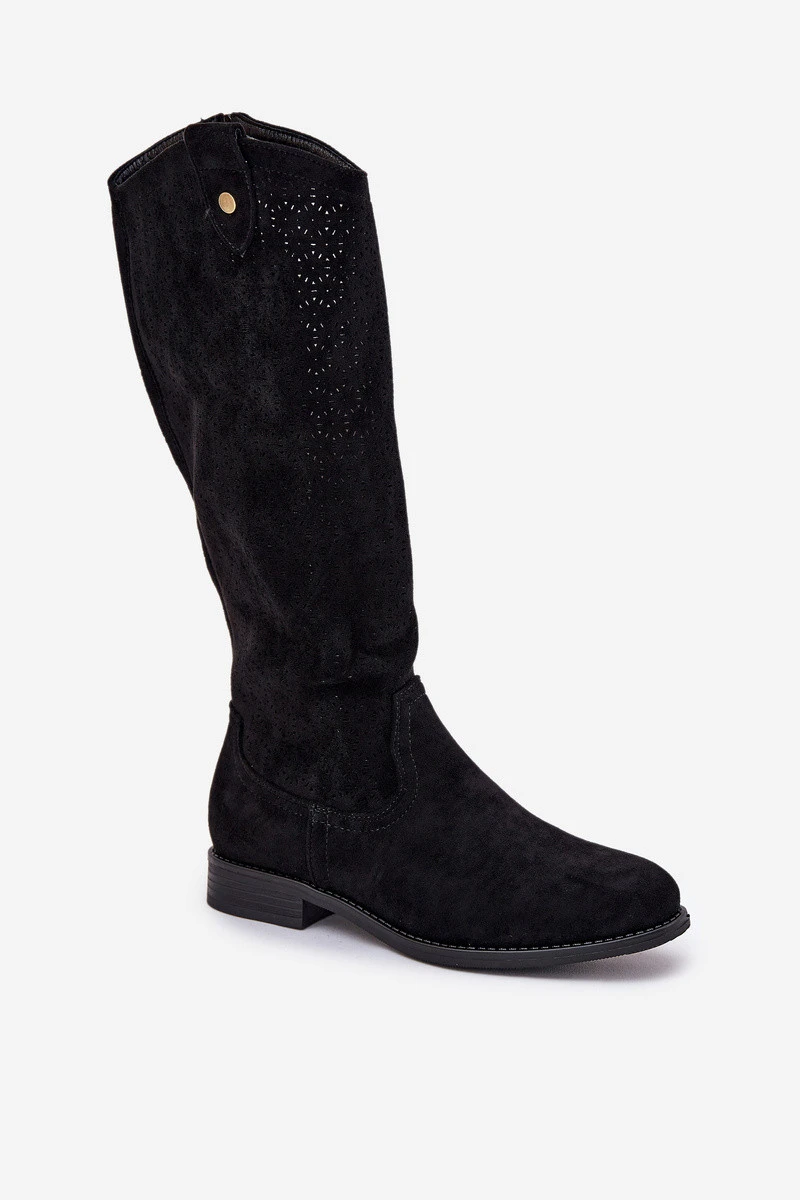 Dámské kozačky značky S.Barski. Vyrobené z eko semiše. Usazeny na plochém podpatku, poskytují komfort po celý den. Děrovaný vzor na svršku jim dodává lehkost a moderní charakter, a zapínání na zip usnadňuje obouvání. Tyto kozačky jsou vynikající volbou pro každodenní jarní styling, spojující funkčnost s módním vzhledem. Při výběru velikosti se řiďte tabulkou velikostí.