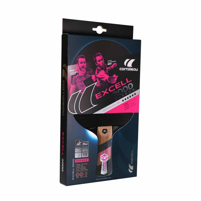 EXCELL CARBON 3000 je nová raketa na stolní tenis od renomované francouzské značky Cornilleau. Použité technologie AERO SOFT a OFC zajišťují vynikající kontakt a kontrolu míče, zatímco technologie EFFICIENT CURVE zajišťuje vynikající rotaci topspinu. Podložka DYNECELL a vysoce dynamická deska rakety z ní činí vynikající vybavení pro pravidelnou hru, zejména pro hráče OFF+. Konstrukce desky a tloušťka obložení zaručují konzistentní trajektorii a rotaci při každém úderu. Použití KARBONOVÉ TECHNOLOGIE, tj. speciální vložka ze 100% uhlíkových vláken umístěná v rukojeti a hlavě rakety zvyšuje tuhost rakety.