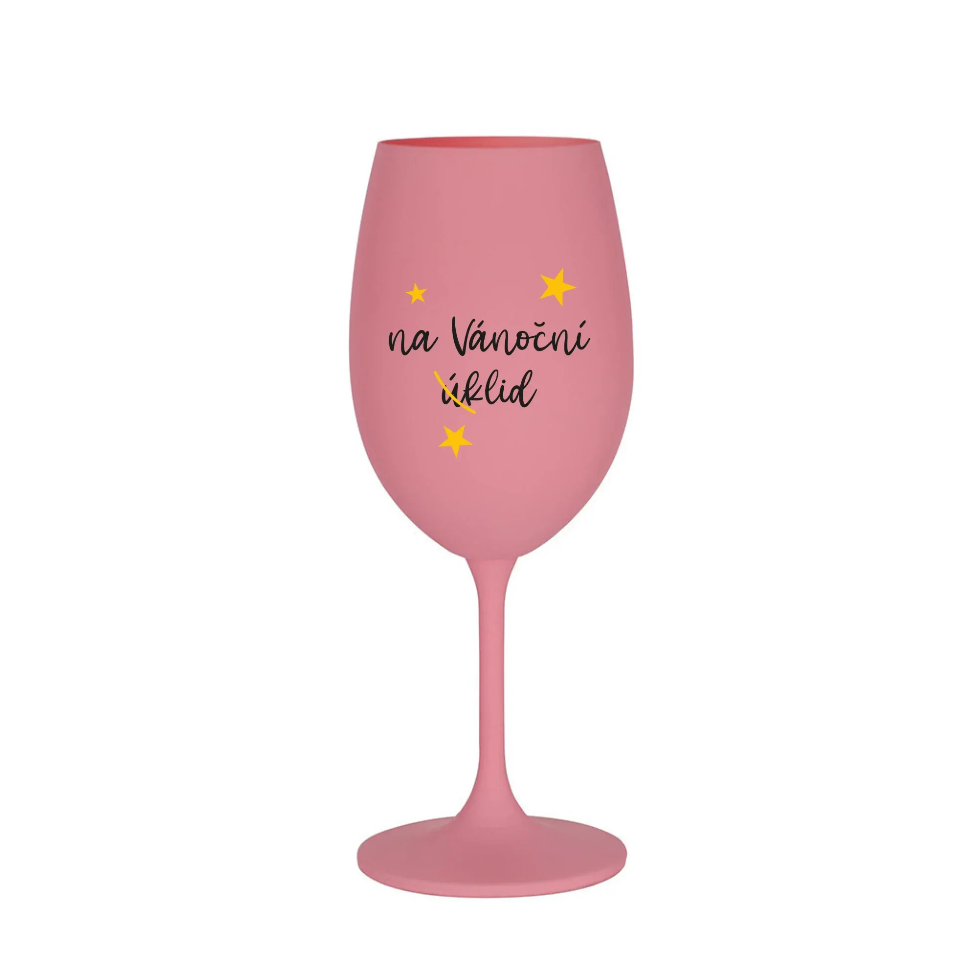 NA VÁNOČNÍ ÚKLID - růžová sklenice na víno 350 ml