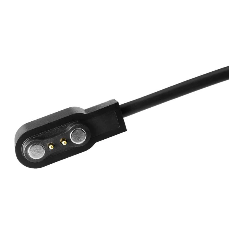 Funkční nabíjecí kabel s konektorem USB na jedné straně a kolíky přitahovanými magnetem na straně druhé.zajišťuje pohodlné a stabilní nabíjení chytrých hodinek díky přesnému uchycení a silnému magnetu.