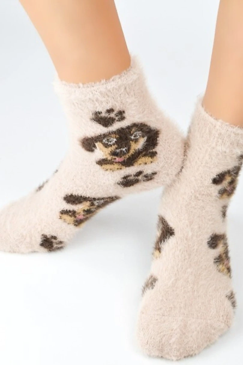 Objevte výjimečné pohodlí s dámskými ponožkami SP008 Fluffy Dog Paws, které kombinují rozkošný design s mimořádnou měkkostí! Jsou vyrobeny z nadýchaného úpletu a zahalují nohy do příjemného tepla, které je ideální pro chladné dny. Ponožky zdobené vzorem psích tlapek nejen potěší, ale díky netlačícímu stahování zajistí i pohodlí. Jsou ideální volbou pro ženy, které doma ocení pohodlí, styl a trochu humoru.