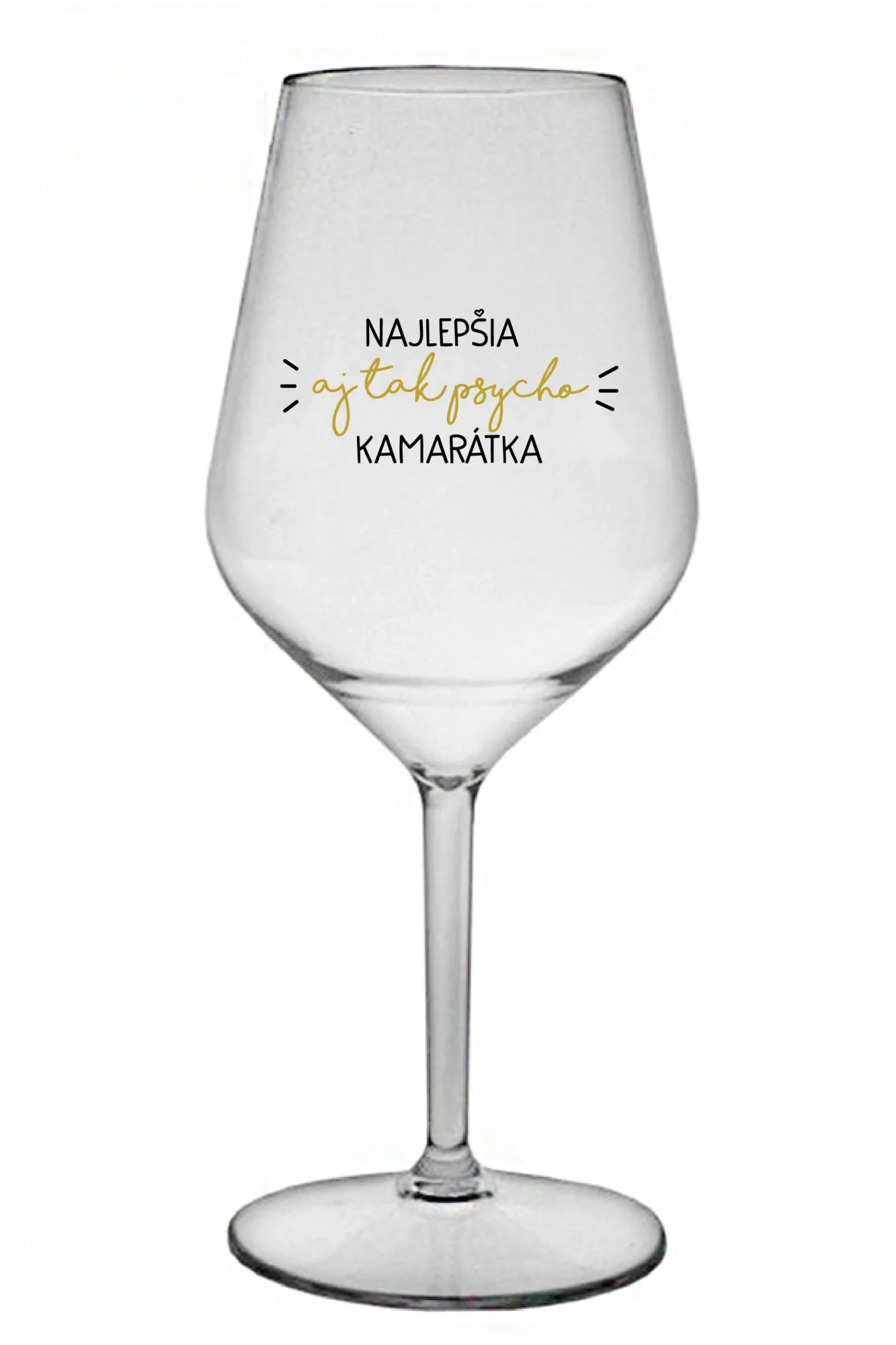 NAJLEPŠIA AJ TAK PSYCHO KAMARÁTKA - priehľadný nerozbitný pohár na víno 470 ml