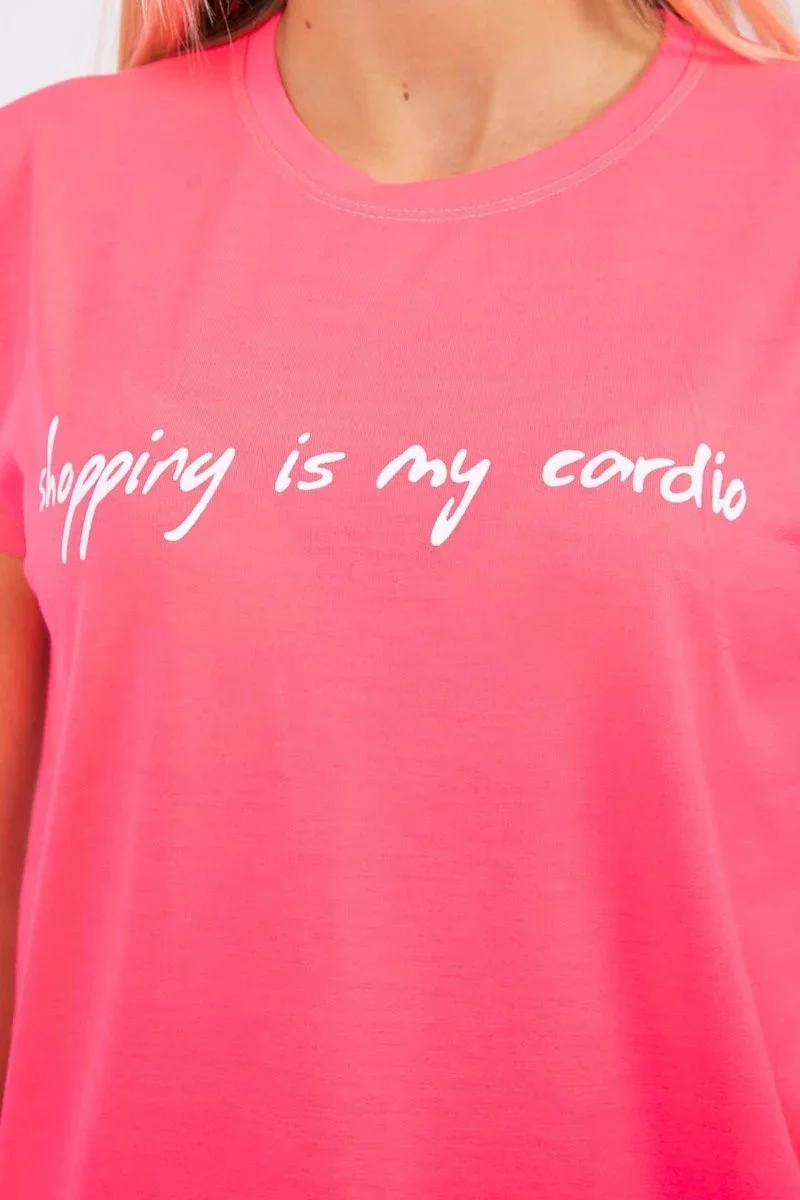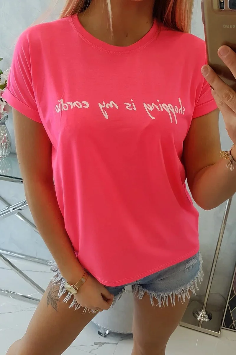 Nakupování je moje kardio halenka růžová neonová