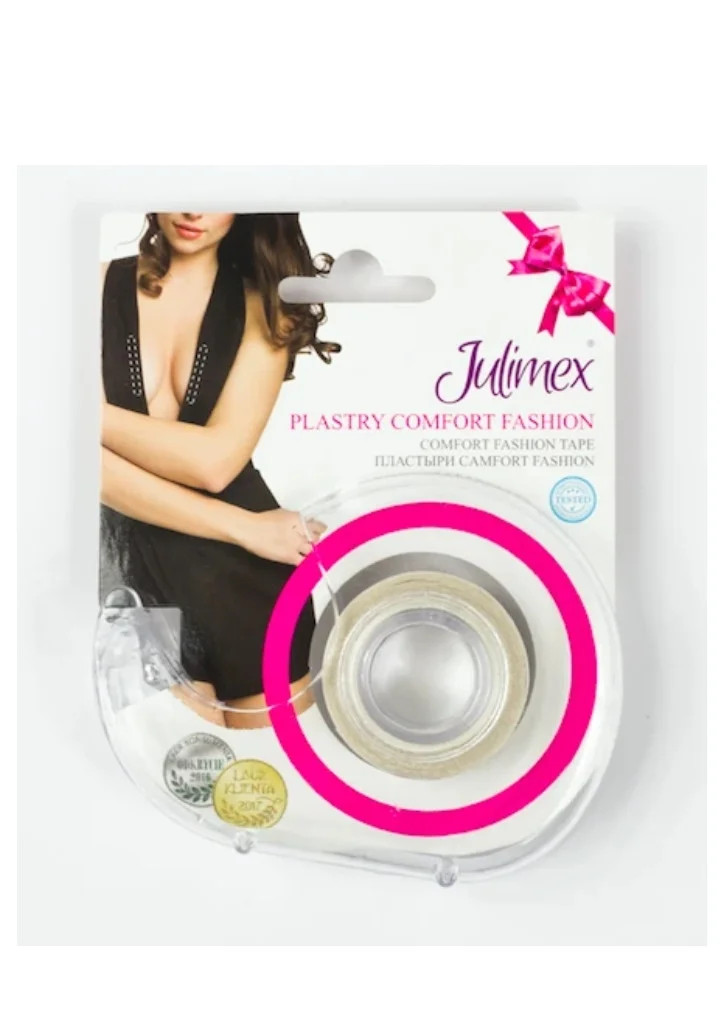 Transparentní 20mm proužky Julimex jsou oboustranně lepící, jedna strana se lepí na tělo a druhá na oblečení. Proužky jsou disktrétním řešení například pro hluboké dekolty nebo odstávající části oblečení. Délka 3m.