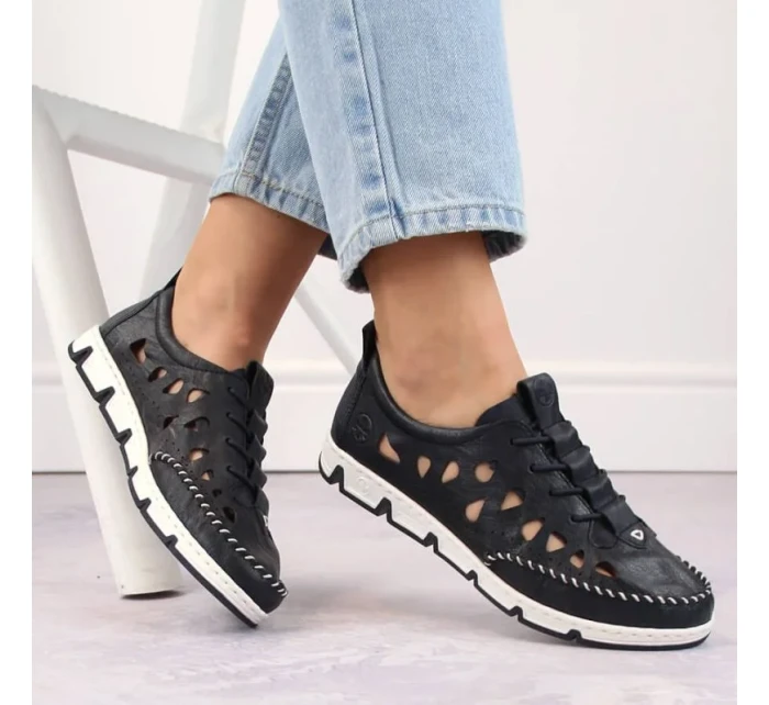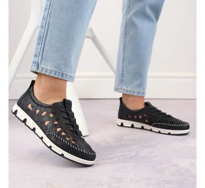 Rieker W RKR652 námořnicky modrá kožená polobotka s prolamovanou podrážkou